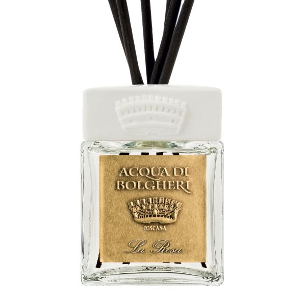 Eine besondere Atmosphäre liegt in der Luft. Der Frühling scheint, die Strahlen der warmen Sonne beleuchten schüchtern die ätherischen Blütenblätter der weißen Rose und der Pfirsichblüte. Sie sind eine neue Liebe, eine sanfte Berührung für die Sinne. Ihre weiße, angeborene Harmonie wird leicht fruchtig und nimmt gedämpfte Zitronennoten vorweg, die in einer Spur von süßen Hölzern ausklingen. Es ist die Poesie von Bolgheri, die in einem Duftzerstäuber mit einem raffinierten gestickten Satinetikett und einer Keramikkappe mit geprägter Krone widerhallt.