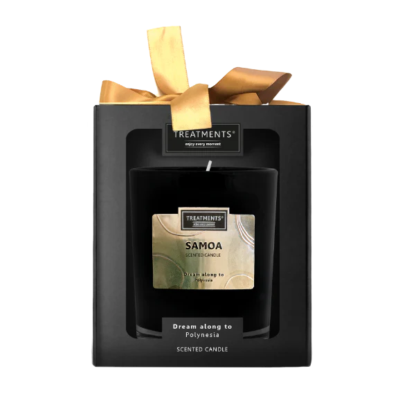 Make a statement in your home with the beautiful Samoa scented candle from Treatments®. Its elegant, luxurious, and modern appearance makes this candle the perfect choice for any interior. The beautiful, semi-transparent smoked glass allows the flame to be clearly visible. This creates a pleasantly warm and atmospheric ambiance, which is rounded off by the sensual fragrance combination of sweet mango, fresh lime, and a hint of musk, transporting you on a journey to the paradise of Polynesia.